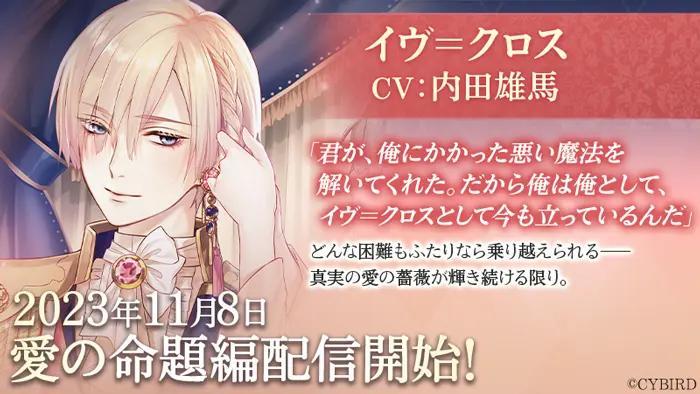 「イヴ=クロス(CV: 内田 雄馬)」の愛の命題編配信が2023年11月8日(水)に決定しました。