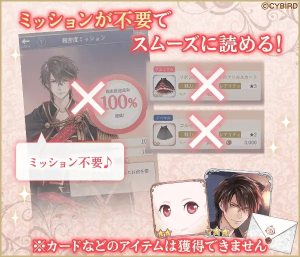 さらに、レンタルストーリーではストーリーを読み進める際に発生するアバターミッションや親密度ミッションミッションが不要となり、よりスムーズにストーリーをお楽しみいただけます。
