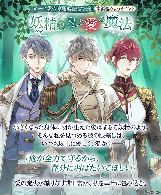 「キース=ハウエル」愛の命題編配信を記念して、アプリ内では本編進めようイベント「キース愛の命題編配信記念 妖精の私と愛の魔法」を、開催しています。