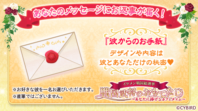 上位になった方には、「あなたのお名前入り!BIGサイズ冠バッジ」と、「彼からのお手紙」をプレゼント☆