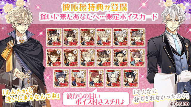 ランキング特典以外にも、特典として豪華なアバターアイテムやボイスカード(ボイス付きスチル)をご用意していますので、お見逃しなく!