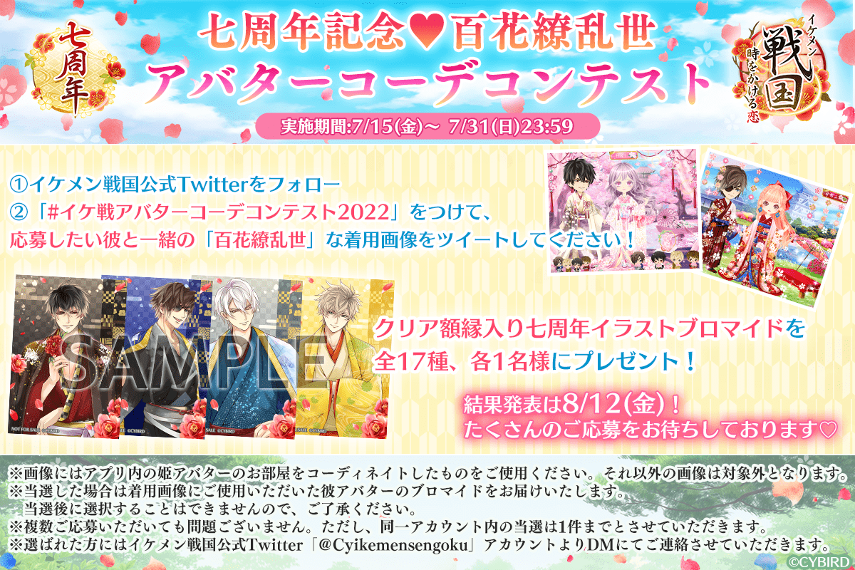 イケメン戦国七周年を記念して、アバターコーデコンテストを開催!