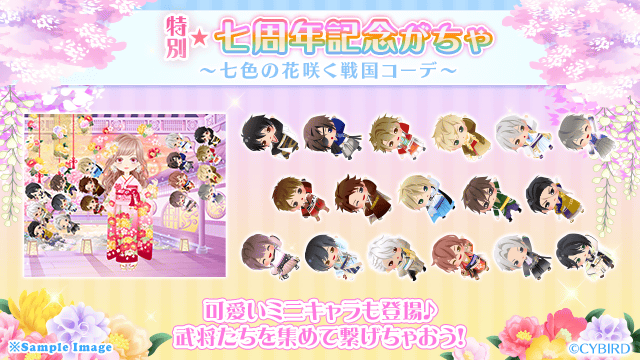 「特別☆七周年記念がちゃ~七色の花咲く戦国コーデ~」を、7月1日(金)0時まで開催中!