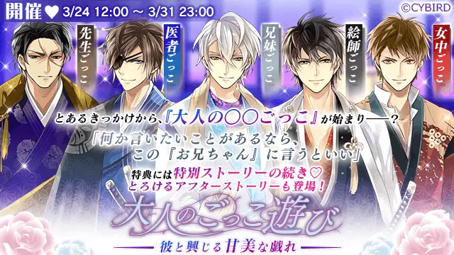 3月24日(火)12時から開催の本編応援キャンペーン「大人のごっこ遊び~彼と興じる甘美な戯れ~」との連動企画も開催中です。