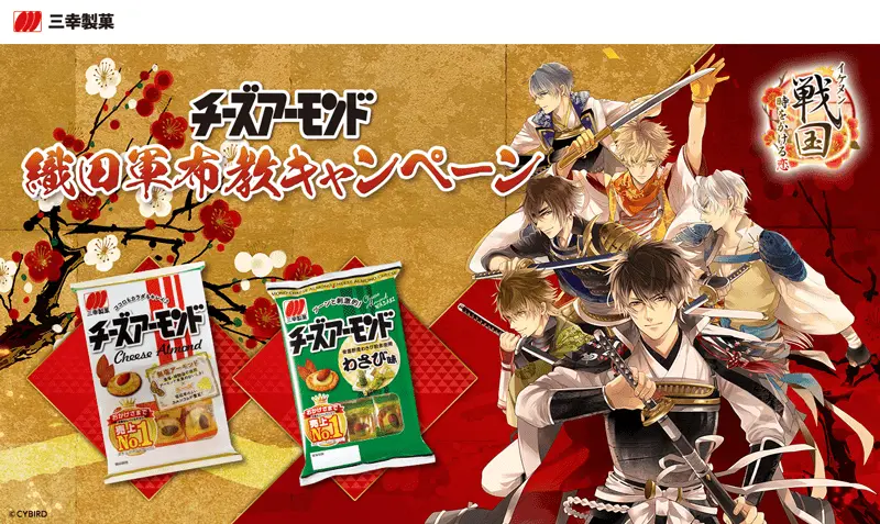 『イケメン戦国◆時をかける恋』は、三幸製菓株式会社(本社:新潟県新潟市北区、代表取締役CEO 佐藤 元保)の人気商品「チーズアーモンド」とのコラボレーション第二弾を2020年5月1日(金)より開始しました。