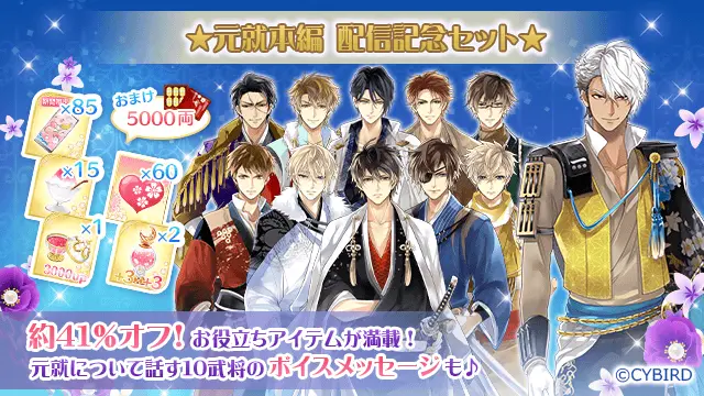 本キャンペーンでは、「毛利元就」本編配信を記念し、「元就本編連動特典」や、「毛利元就」の印象について話す10武将のボイスメッセージ入りの「元就本編配信記念セット」も登場します。