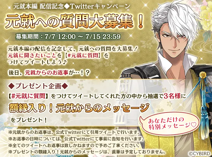 7月7日(火)の配信開始に合わせて、本日より「元就本編 応援キャンペーン」を開催します。