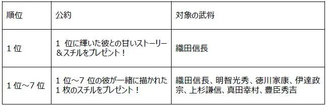 アプリ内では、2020年6月に開催した「イケメン戦国総選挙 乱世の武将(スター)オーディション」の公約特典のうち一部をお贈りしています。対象者は、総選挙開催中に対象の武将に1票以上投票され、かつ、期間中にマイページにアクセスいただいた方となりますので、どうぞお見逃しなく。