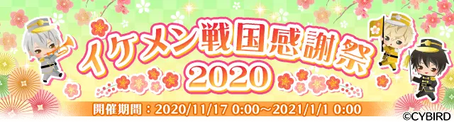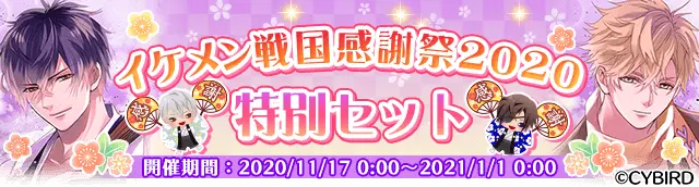 『イケメン戦国◆時をかける恋』では、11月17日(火)より、お客様からの日頃のご愛顧に感謝を込めて、「イケメン戦国感謝祭2020」をスタートします。