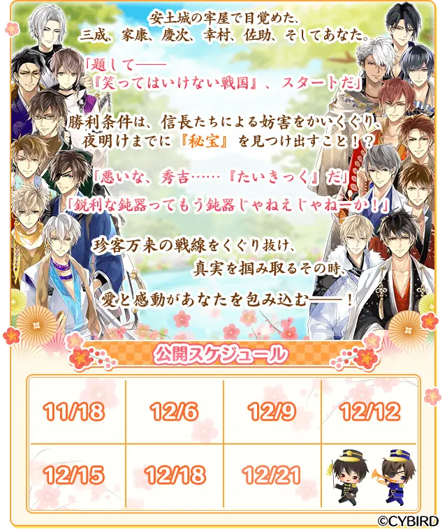 限定ミニキャラ特典や期間限定の日替わりログインボーナスをはじめ、特別ストーリー「笑ってはいけない戦国」の開幕、クリスマス限定プレゼントなど、豪華な企画が満載となっています。