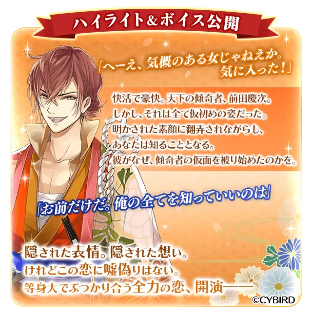 『イケメン戦国◆時をかける恋』において、「前田慶次(CV:沢城 千春)」の本編配信が、12月23日(水)に決定しました。
