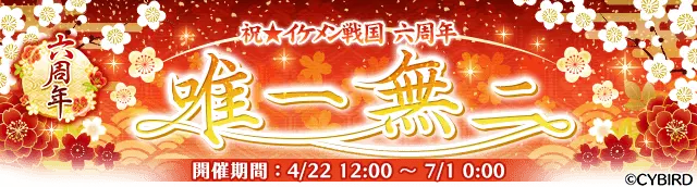 『イケメン戦国◆時をかける恋』は、6月22日(火)にリリース六周年を迎えるのを記念し、「唯一無二」をテーマに様々なキャンペーンを実施します。この「唯一無二」というテーマには、全17武将たちがそれぞれに持つ「唯一無二」の魅力を余すところなくお伝えしたい、そして、『イケメン戦国◆時をかける恋』があなたにとっての「唯一無二」でありたいという想いを込めています。