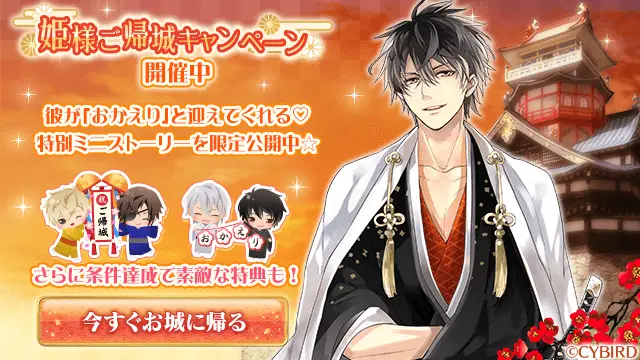 7月1日(木)より、『イケメン戦国◆時をかける恋』のアプリ内にて、特別ストーリーが無料で読めたり、限定アバターがGETできる、「姫様ご帰城キャンペーン」を開催します。