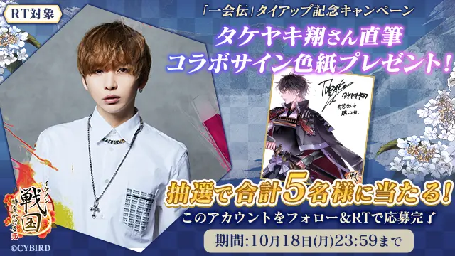 さらに、今回のタイアップを記念して、タケヤキ翔さんの直筆コラボサイン色紙が当たるキャンペーンも実施中です。参加方法は、『イケメン戦国◆時をかける恋』の公式アカウント(@Cyikemensengoku)をフォローし、該当ツイートをリツイートするだけ。ここだけの特別なコラボサイン色紙を、どうぞお見逃しなく。