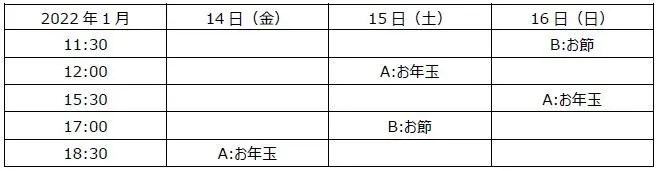 期 間:2022年1月14日(金)~ 1月16日(日)