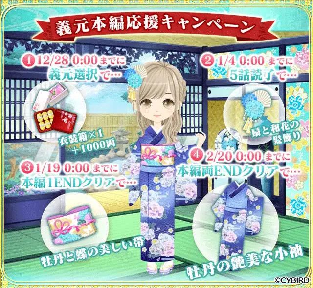本日12月23日(木)より、「義元本編 応援キャンペーン」を開催します。2022年2月20日(日)0時までに「今川義元」本編ストーリーを読み進めると、ゲーム内で使えるアイテムや限定アバターアイテムが獲得できます。