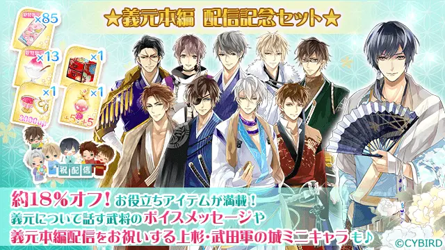 本編では、「今川義元」との身を切るほど切なく、狂おしいほど甘い、許されざる恋物語をお楽しみいただけます。また、彼との恋物語を体験できる「義元本編ダイジェストPV」も配信中です。