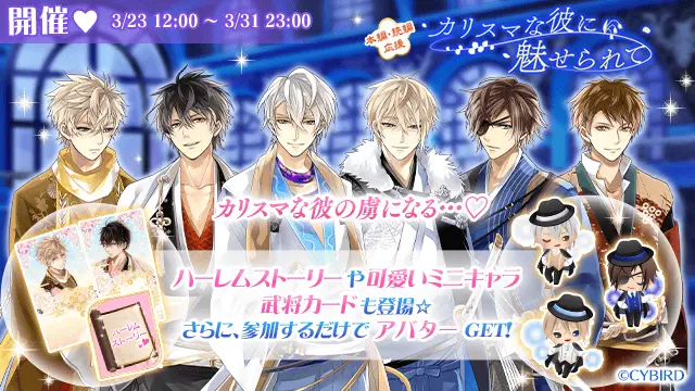 3月23日(水)12時から開催の本編・続編応援キャンペーン「カリスマな彼に魅せられて」との連動企画を開催。3月31日(木)23時までに条件をクリアすると、「謙信のミニキャラ」をプレゼントします。