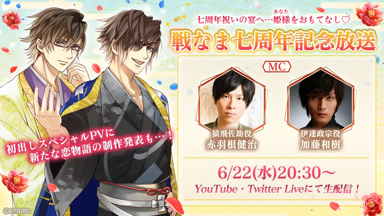 七周年を迎える当日、6月22日(水)20時30分より、『イケメン戦国◆時をかける恋』の生放送番組「戦なま」の七周年記念放送が決定しました。
