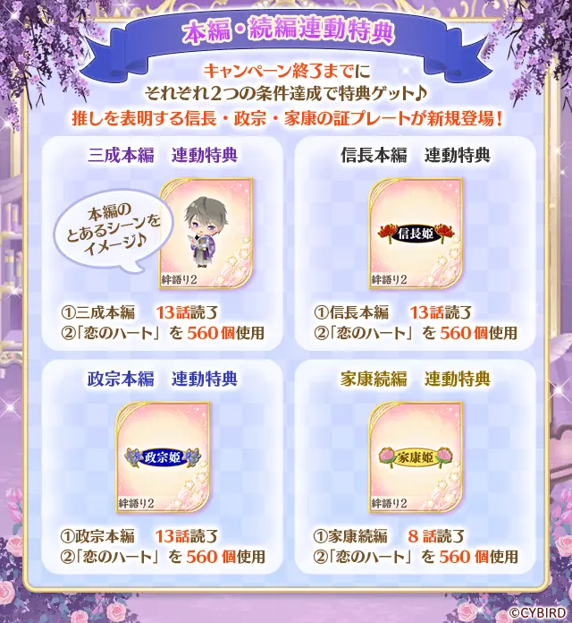 ■本編・続編応援キャンペーン「絆語り~相容れないふたり編~」との連動特典も!2024年3月1日(金)12時から開催する本編・続編応援キャンペーン「絆語り~相容れないふたり編~」と石田三成「永遠の恋」ルートの連動企画を実施します。