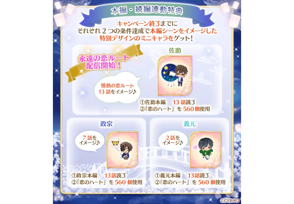 ・なお、すでに「幸福な恋」と「情熱の恋」両ルートをクリアされている場合も「永遠の恋」ルートの開放対象となります。