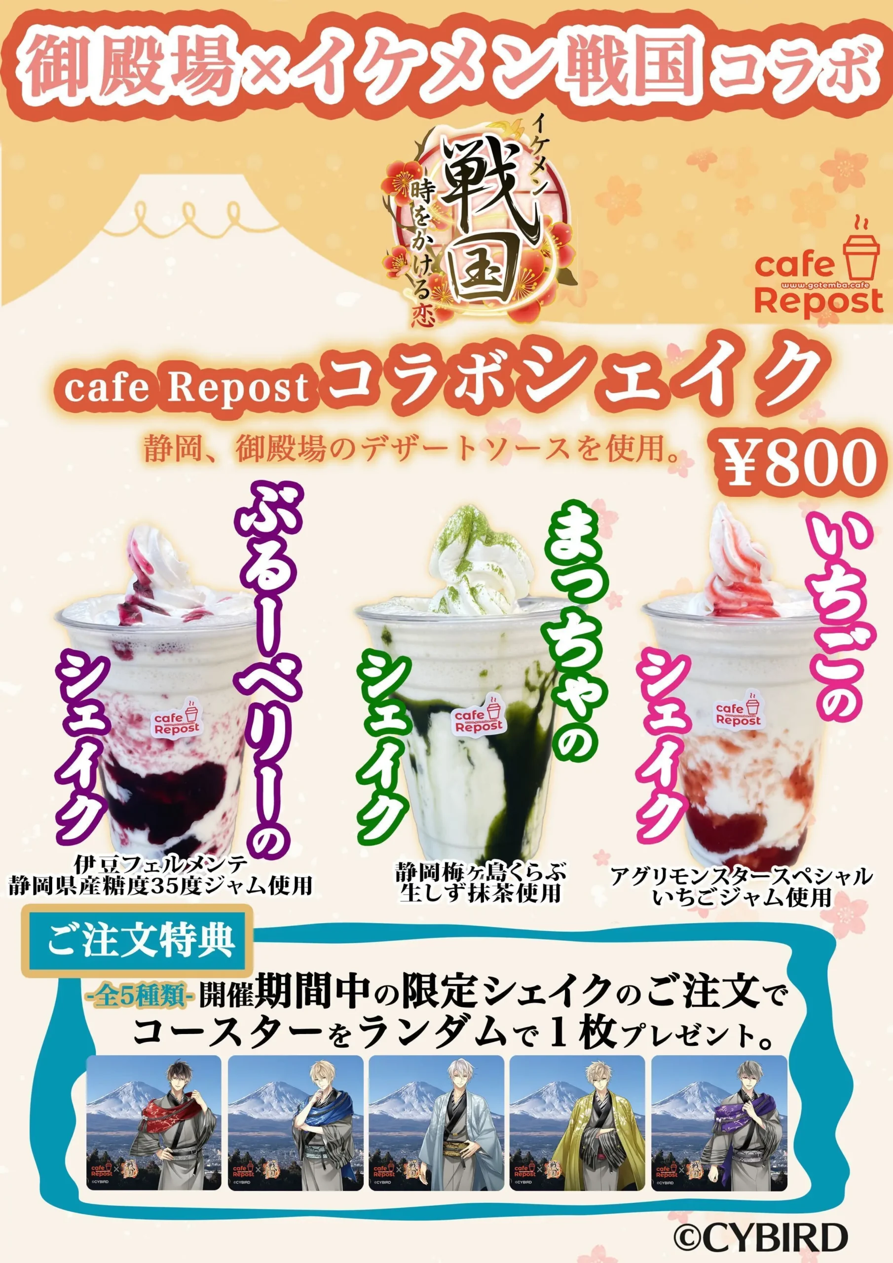 富士山御殿場・はこね観光案内所CAFE「cafe Repost」にて、イケメン戦国コラボを記念した、オリジナルメニュー販売が決定です!