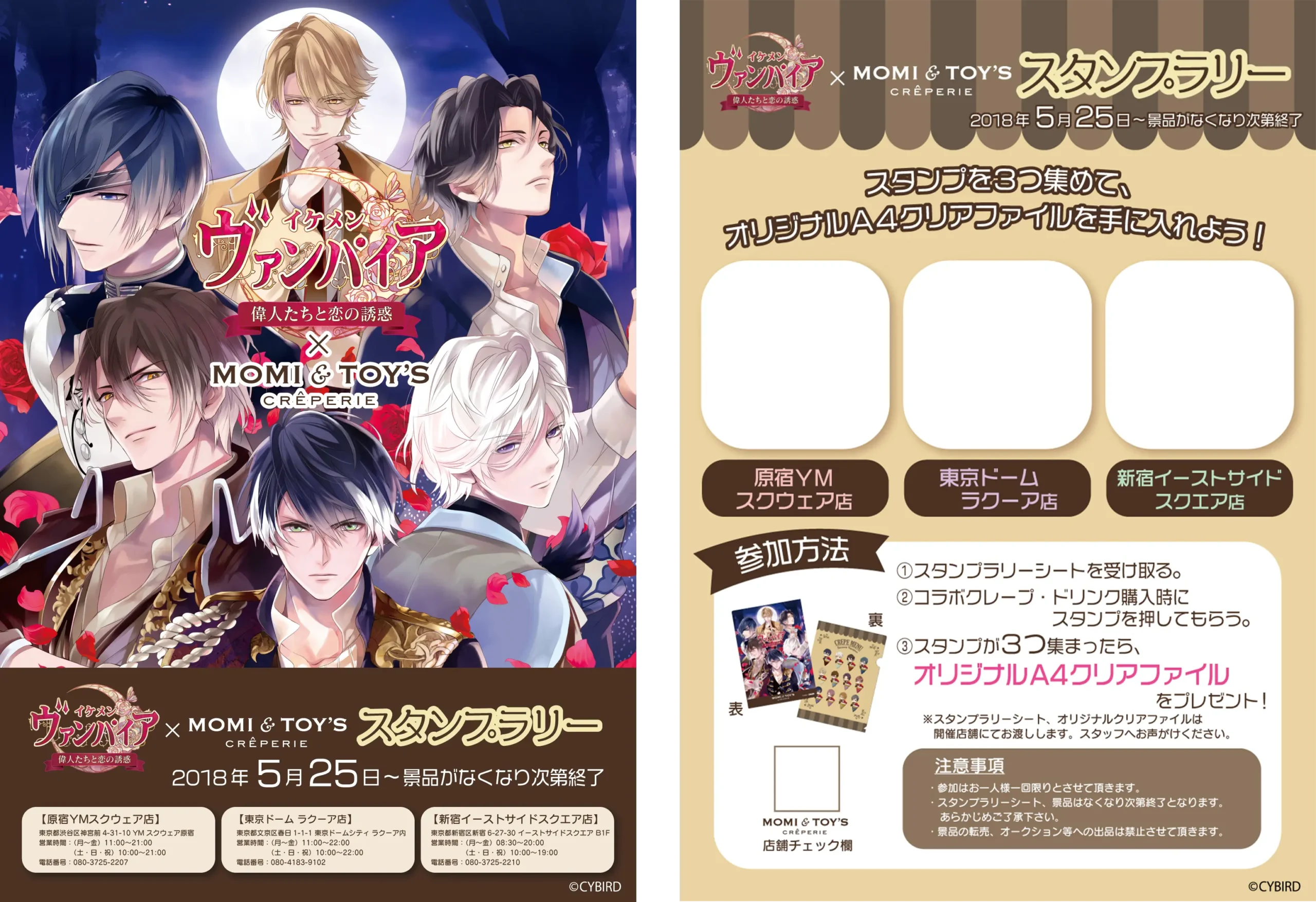 『MOMI&TOY’S』と『イケメンヴァンパイア◆偉人たちと恋の誘惑』のコラボ開催を記念して、新宿イーストサイドスクエア店・東京ドーム ラクーア店・原宿YMスクウェア店にてスタンプラリー企画を実施します。