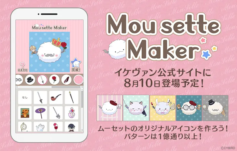 これを記念し、アプリ内では、人気沸騰中の2.5次元俳優・崎山つばささんとのコラボ企画や、キャラクター総選挙「イケヴァン総選挙~お前は誰に抱かれたい~」を、本日8月9日(木)より開始します。そのほか、明日からは、本アプリのマスコットキャラクター・ムーセットのオリジナルアイコンが作れる「ムーセットメイカー」が登場するなど、1周年を記念した様々な豪華企画を期間限定でお楽しみいただけます。