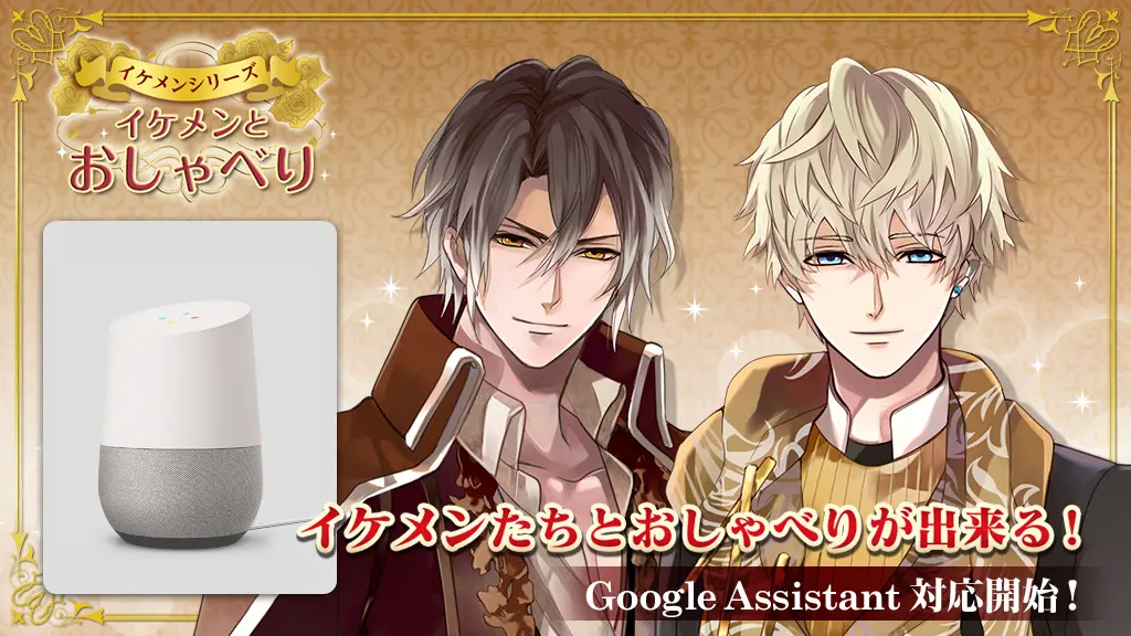 Google が提供するクラウドベースの音声サービス「Google アシスタント」に対応する「イケメンシリーズ イケメンとおしゃべり」のサービスが配信開始しました!音声で操作でき、常にハンズフリーで利用できるスピーカー「Google Home」に「OK Google, イケメンを始めて」と話しかけるだけで、レオナルドとフィンセントがあなたに甘く優しく囁いてくれます。