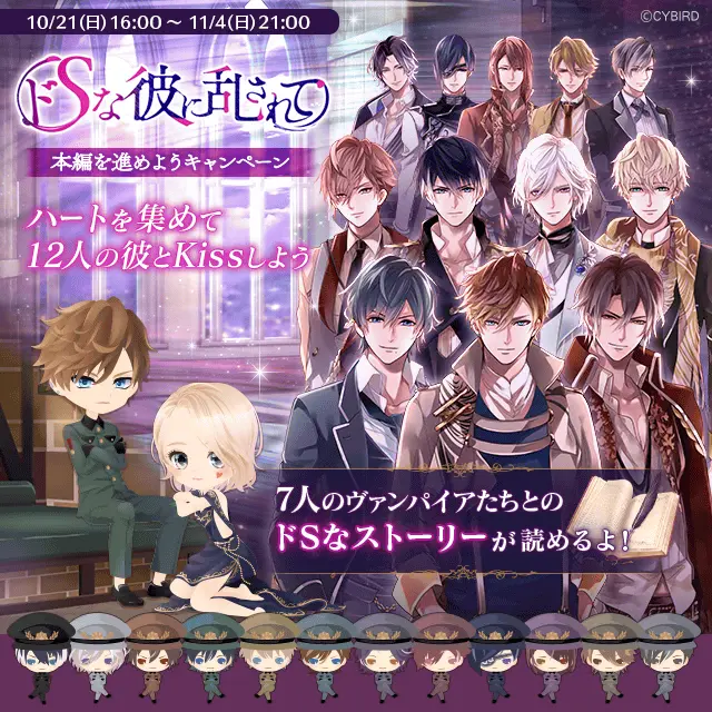 テオドルス・ファン・ゴッホのストーリー配信と同時に、本編進めようキャンペーン「ドSな彼に乱されて」を、10月21日(日)より期間限定で開催します。本キャンペーンは、テオドルス・ファン・ゴッホの「ドSな悪魔」というキャラクター性にちなんだ「ドS」がテーマのイベントとなっています。期間中に本編ストーリーを進めて一定条件をクリアすると、ヴァンパイアたちとのドSなストーリーをお楽しみいただけます。
