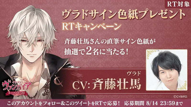 「ヴラド役 斉藤 壮馬さん サイン色紙RTキャンペーン」を開催!