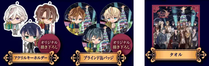 また、園内レストラン「ワイルドダイニング」にて、イケメンヴァンパイアをイメージしたコラボフードが登場します。メインの料理にはランダムポスターも付いてきます。園内売店「プレジャーステーション」では、コラボグッズも販売いたします。普段遣いしやすいミニハンドタオルを始め、ファンにはたまらない描き下ろしデザインのブラインド缶バッジ・アクリルキーホルダーを販売します。