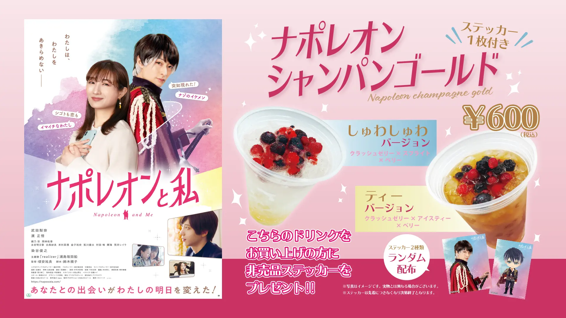 『ナポレオンと私』のナポレオンをイメージした全2種のオリジナルドリンクを、池袋HUMAXシネマズ、渋谷HUMAXシネマ、横須賀HUMAXシネマズの3館にて提供します。