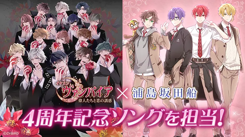 『イケメンヴァンパイア◆偉人たちと恋の誘惑』は、2021年8月14日(土)より「イケヴァン総選挙 2021」を開催します。総選挙のイベントページでは「浦島坂田船」が担当する4周年記念ソング「Ring」を、アプリ内先行でフルサイズにて聴くことができます。