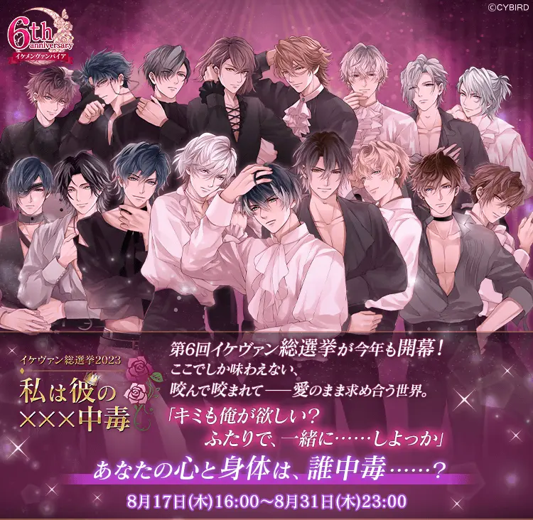 今年の総選挙のテーマは「中毒」です。特典ストーリーでは、もしもあなたがヴァンパイアとなり、彼と永遠を生きていたら……というIFの世界が描かれます。身も心も中毒に侵されるように、咬んで咬まれて――