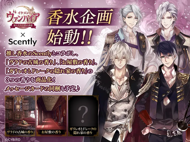 6周年を記念して、推し香水の「Scently」とコラボレーションし、「ヴラドの古城の香り」「お屋敷の香り」「ガリレオとドレークの隠れ家の香り」の3種類の香水の販売を予定しています。