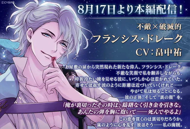 2023年8月17日(木)より、「フランシス・ドレーク(CV:畠中 祐)」の本編が配信開始しました。