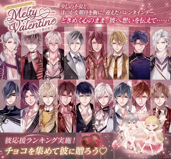 今回のテーマは「両片想い」です。彼に贈ったチョコの数を競う「総合ランキング」「彼応援ランキング」の2つのランキングがあり、順位によって、様々な特典を獲得することができます。