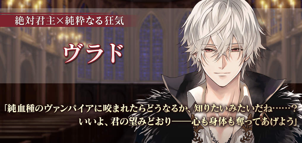 名称:イケメンヴァンパイア◆偉人たちと恋の誘惑 ジャンル:女性向け恋愛ゲーム 価格:基本無料(アイテム課金あり) 対応OS:iOS13.0以降,Android8.0以降 サービス開始:2017年7月31日