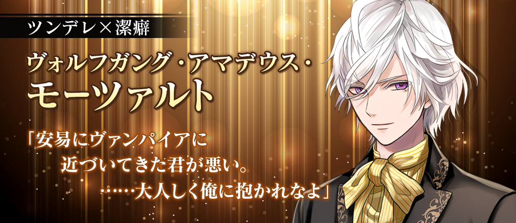 名称:イケメンヴァンパイア◆偉人たちと恋の誘惑 ジャンル:女性向け恋愛ゲーム 価格:基本無料(アイテム課金あり) 対応OS:iOS13.0以降,Android8.0以降 サービス開始:2017年7月31日