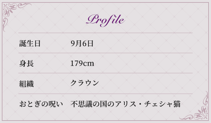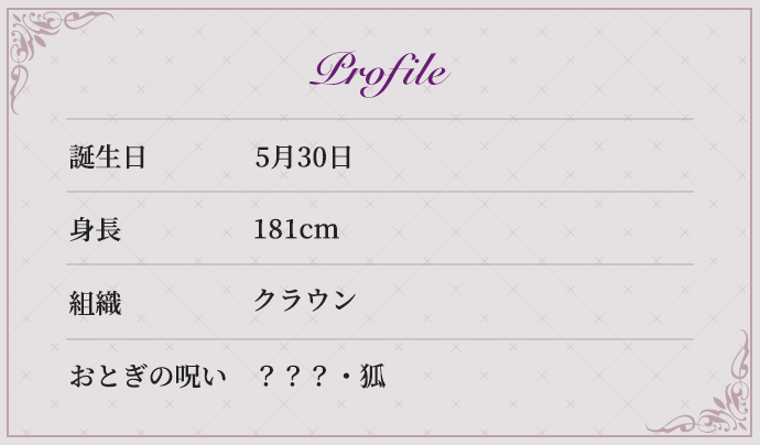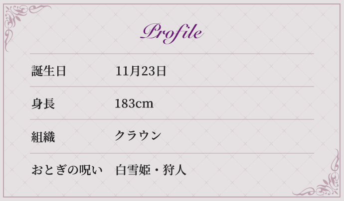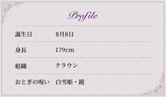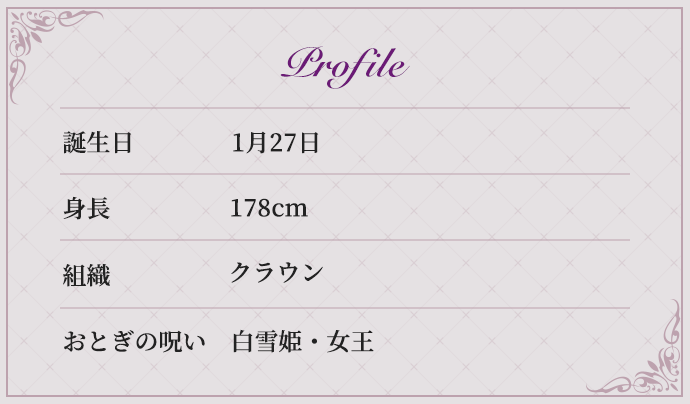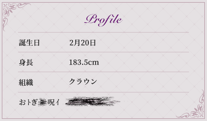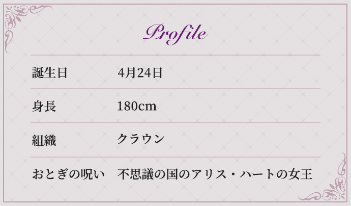 極悪非道な悪の象徴として恐れられる、女王直属の勅命部隊クラウンのNo.1。