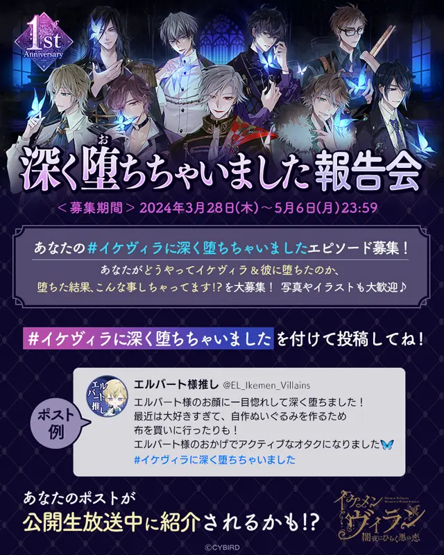『イケメンヴィラン 闇夜にひらく悪の恋』(以下、『イケメンヴィラン』)は、2024年3月28日(木)でサービス開始より1周年を迎えました。この日を迎えられたのは、ファンの皆さまが彼らに変わらぬ愛を注いでくださったことにほかなりません。深くお礼を申し上げます。