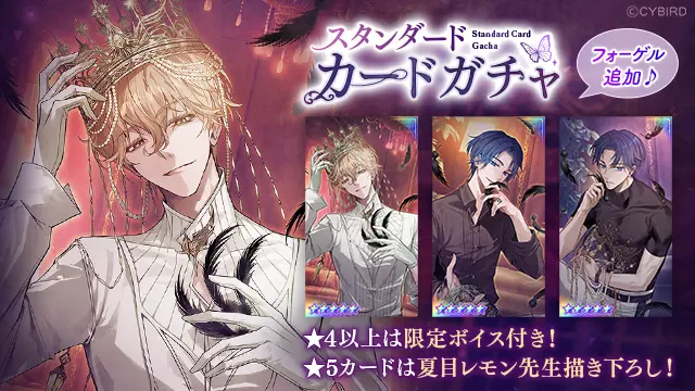 「スタンダードカードガチャ」にはキャラクターデザイン担当の夏目レモン先生描き下ろしの★5の限定ボイス付カードが、「コインガチャ」には★2のカードがそれぞれ追加されています。